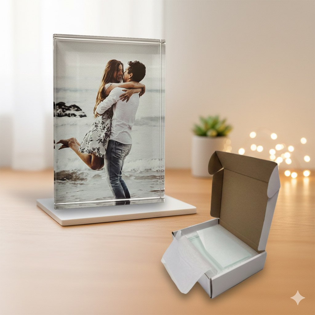 Αυτό που κάνει το Κρύσταλλο με Εκτύπωση Φωτογραφίας τόσο ξεχωριστό είναι η αλληλεπίδραση με το φως. Οι λείες άκρες και το καθαρό γυαλί διαθλούν το φως, φωτίζοντας το τυπωμένο θέμα από μέσα προς τα έξω. Το αποτέλεσμα είναι μια συναρπαστική εμφάνιση με βάθος που ξεπερνά κάθε κοινή εκτύπωση.