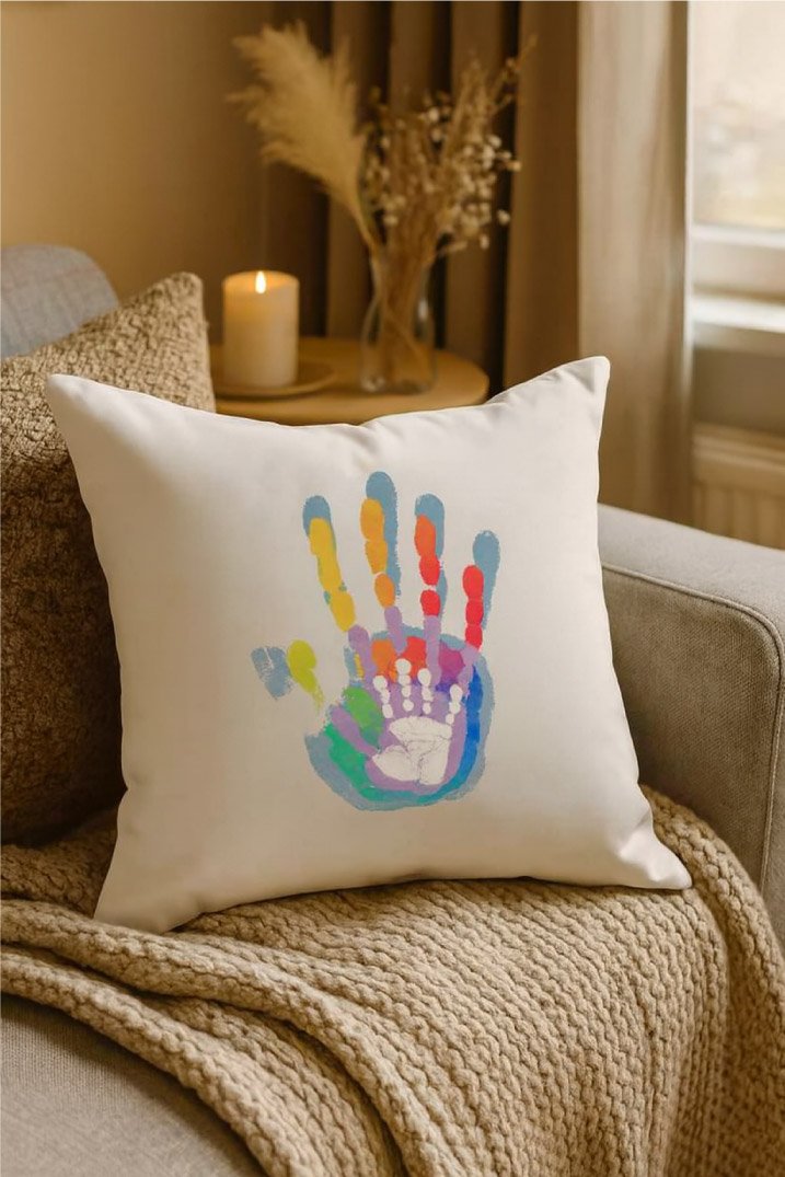 Ενώ τα μαξιλάρια με φωτογραφίες μπορεί μερικές φορές να δείχνουν “φορτωμένα”, το σχέδιο με τα αποτυπώματα προσφέρει μια μινιμαλιστική και ταυτόχρονα βαθιά αισθητική. Οι παλάμες των γονιών σε συνδυασμό με τα μικρά αποτυπώματα των παιδιών δημιουργούν ένα αρμονικό έργο τέχνης. Αυτή η μορφή απεικόνισης είναι διαχρονική και ταιριάζει απόλυτα σε μοντέρνους χώρους. Είναι η ιδανική λύση για όσους αναζητούν ένα προσωπικό δώρο που είναι διακριτικό αλλά και εξαιρετικά συγκινητικό.